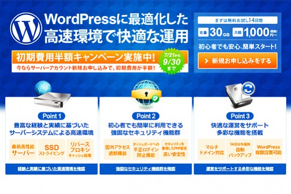WordPressのサーバをお探しの方に朗報!7/21からwpXの初期費用が半額キャンペーン開始!