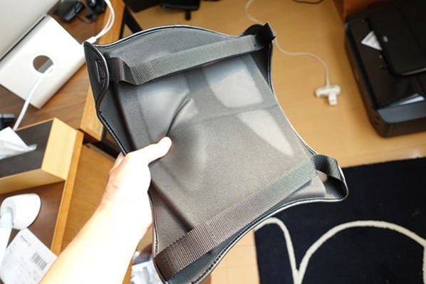 これが裏面。尻の痛くなりそうな部分にムンニムニのジェルっぽい柔らか素材が付いています。これ触ったら分かるんですがかなりムニムニで絶対尻痛に効きそう。これは期待出来る。